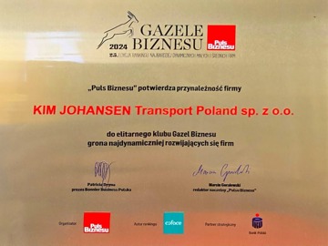 Kim Johansen Transport Poland receives Gazelle Award for growth in 2024