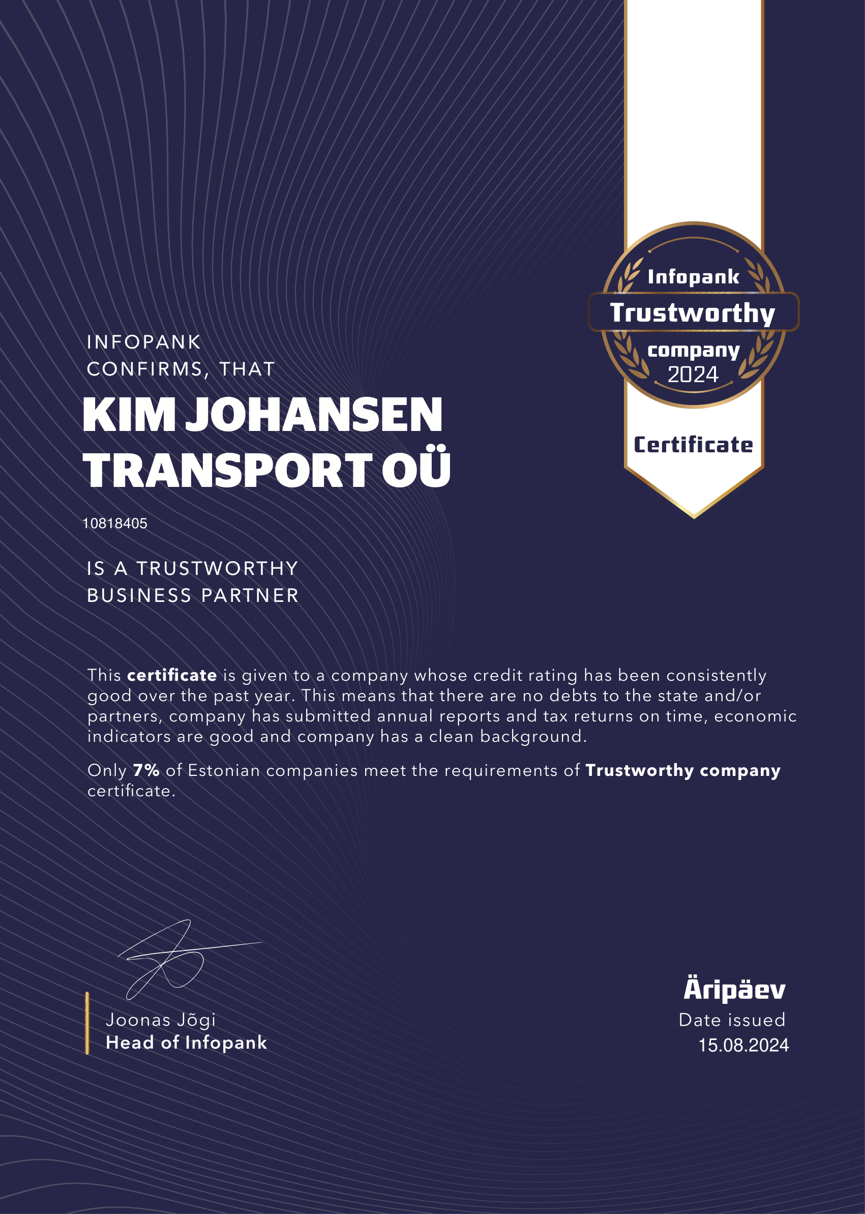 Only 7 % of Estonian companies meet the requirements of being a Trustworthy Company and receive this certificate, so no surprise that we are extremely proud of our colleagues in the Baltics.